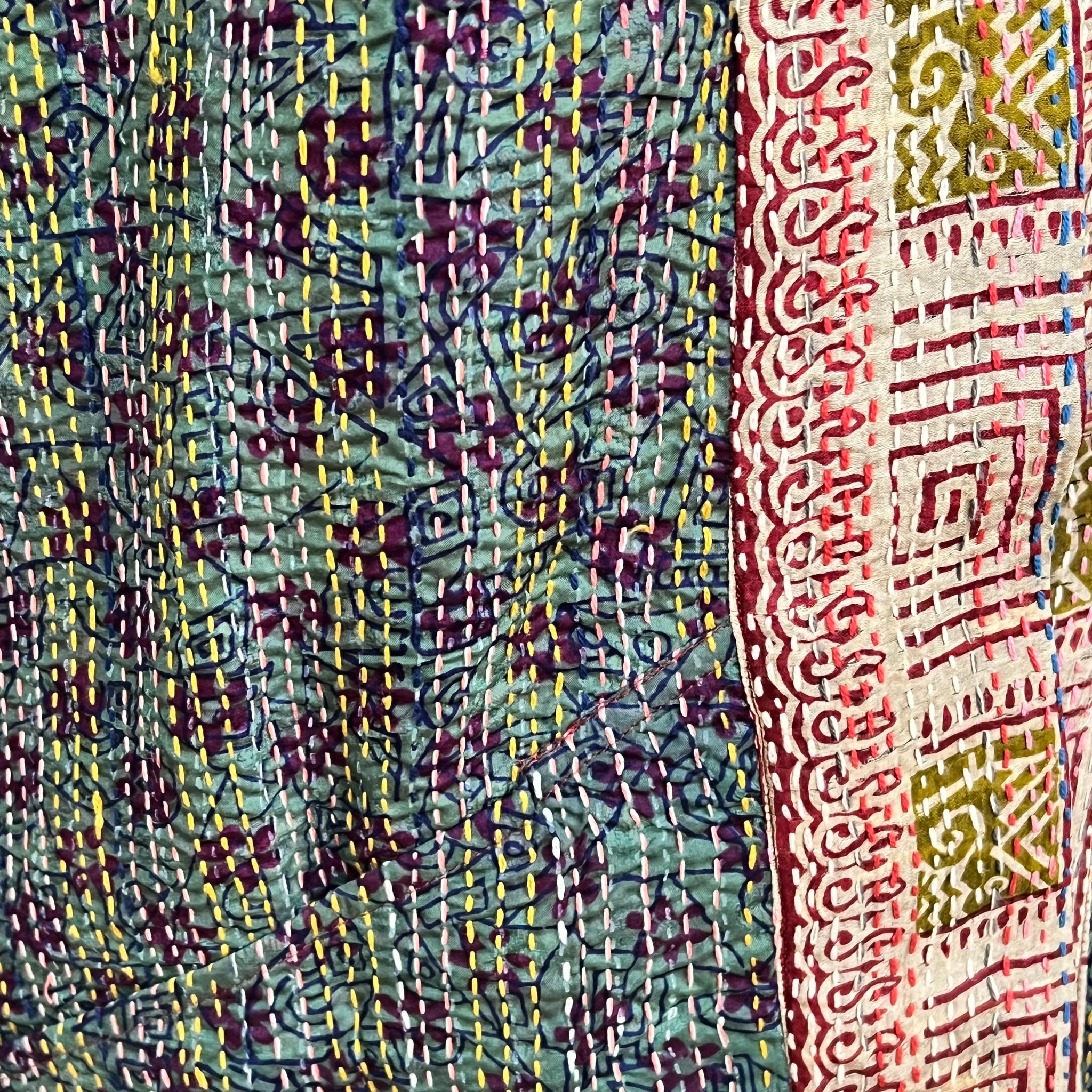 Saragossa’s Barcelona is a beautifully designed silk kantha jacket.  Each jacket is unique and reversible. Kantha is a traditional form of embroidery that originated in the Indian subcontinent. The technique involves simple, running stitches that create beautiful patterns on the silk fabric. The versatility of the Barcelona jacket makes it perfect for business, formal occasions and nightlife. This reversible jacket features a wide tape of fabric at the lapel that complements the beautiful colors of every jacket.   Barcelonas come in small, medium, large and extra large.