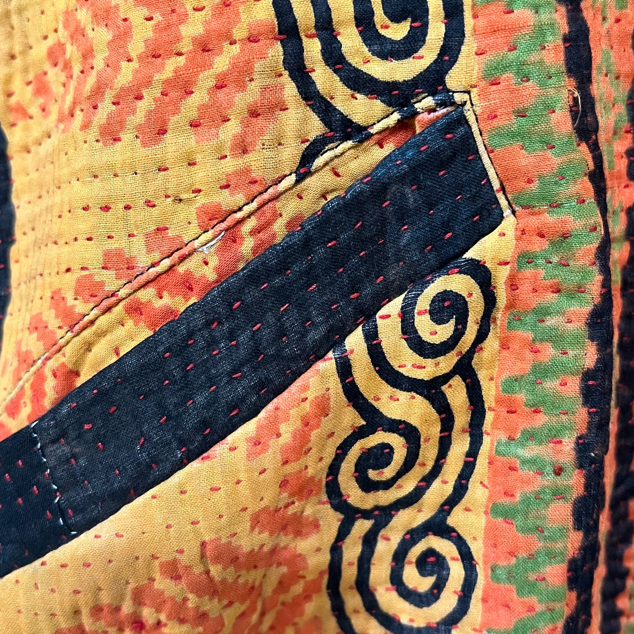 • Vintage Kantha quilts were upcycled to create this jacket.