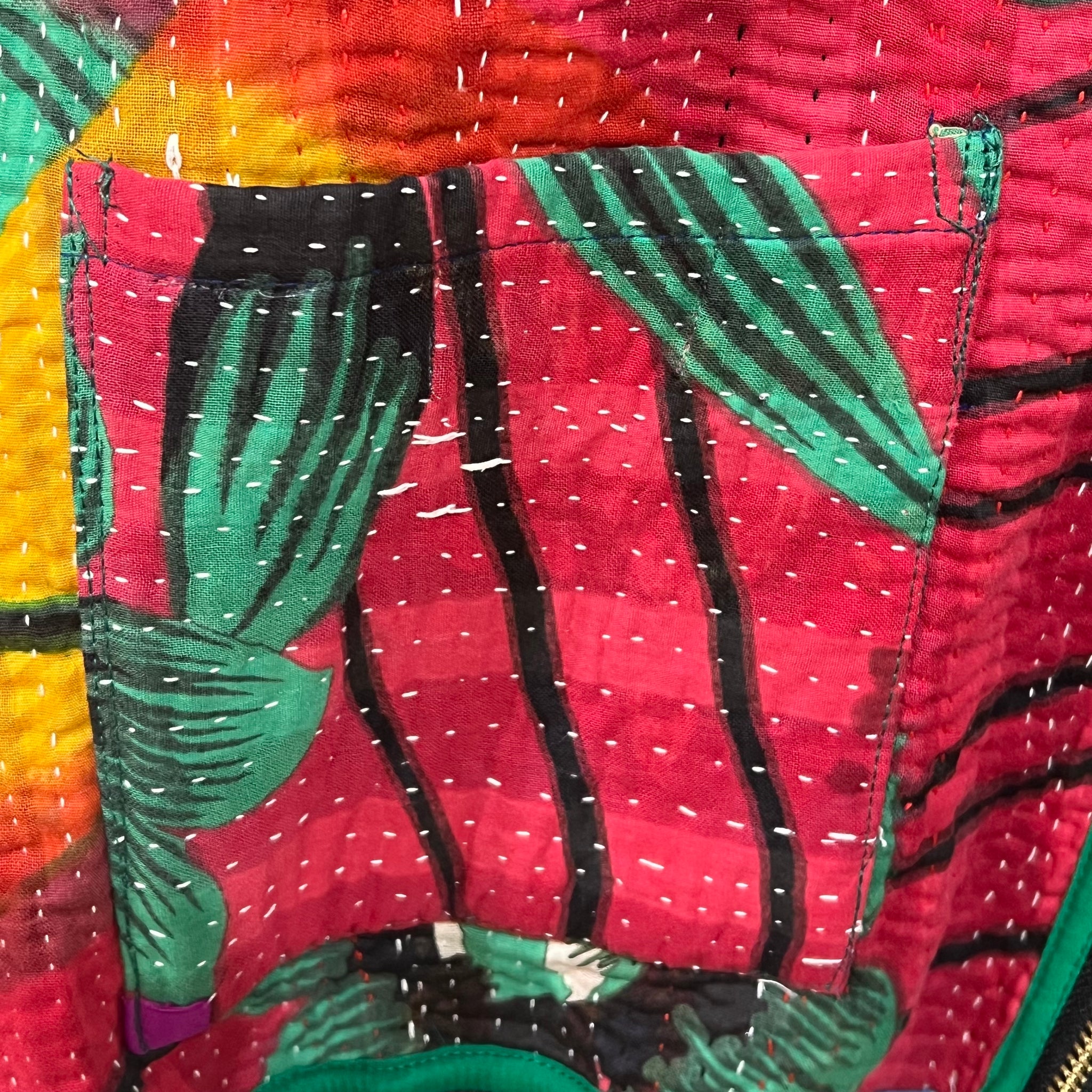 - Vintage Kantha quilts were upcycled to create this jacket.