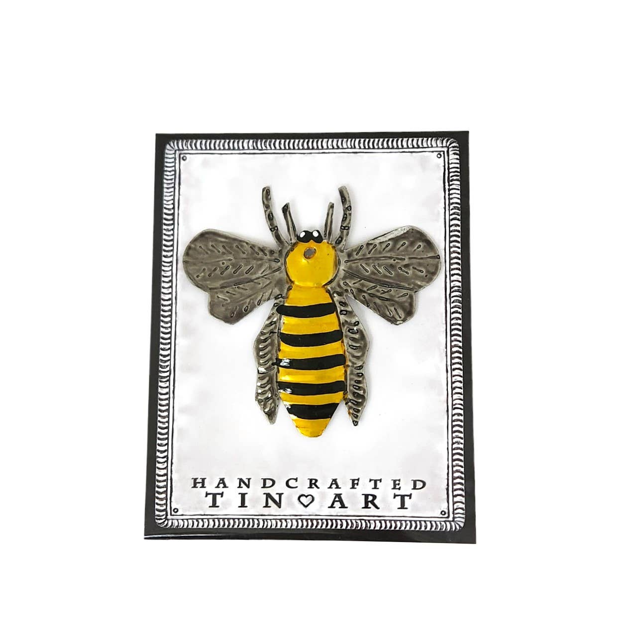 Handcrafted Tin Art bee ornament. Nicely Packaged for retail.