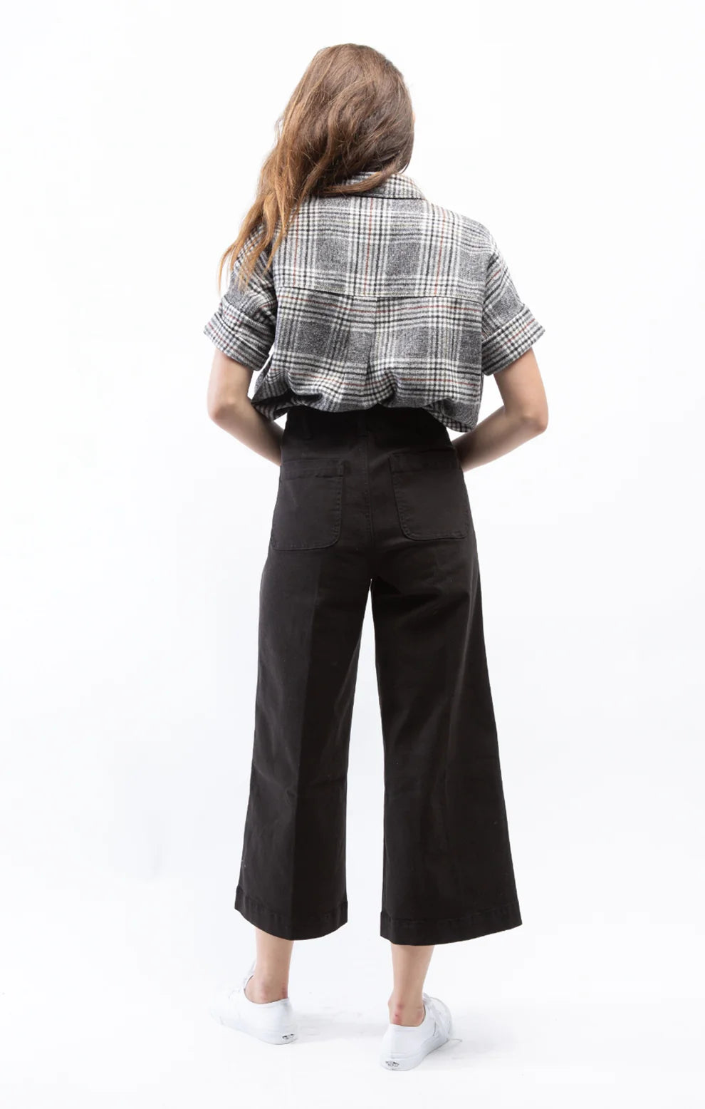 Show off cool retro style in high-waisted wide-leg crop pants constructed from stretch cotton for easy-wear comfort.